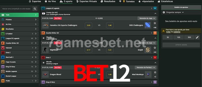 A aposta Bet12 oferece aos jogadores a experiência mais conveniente de apostas em eSports!